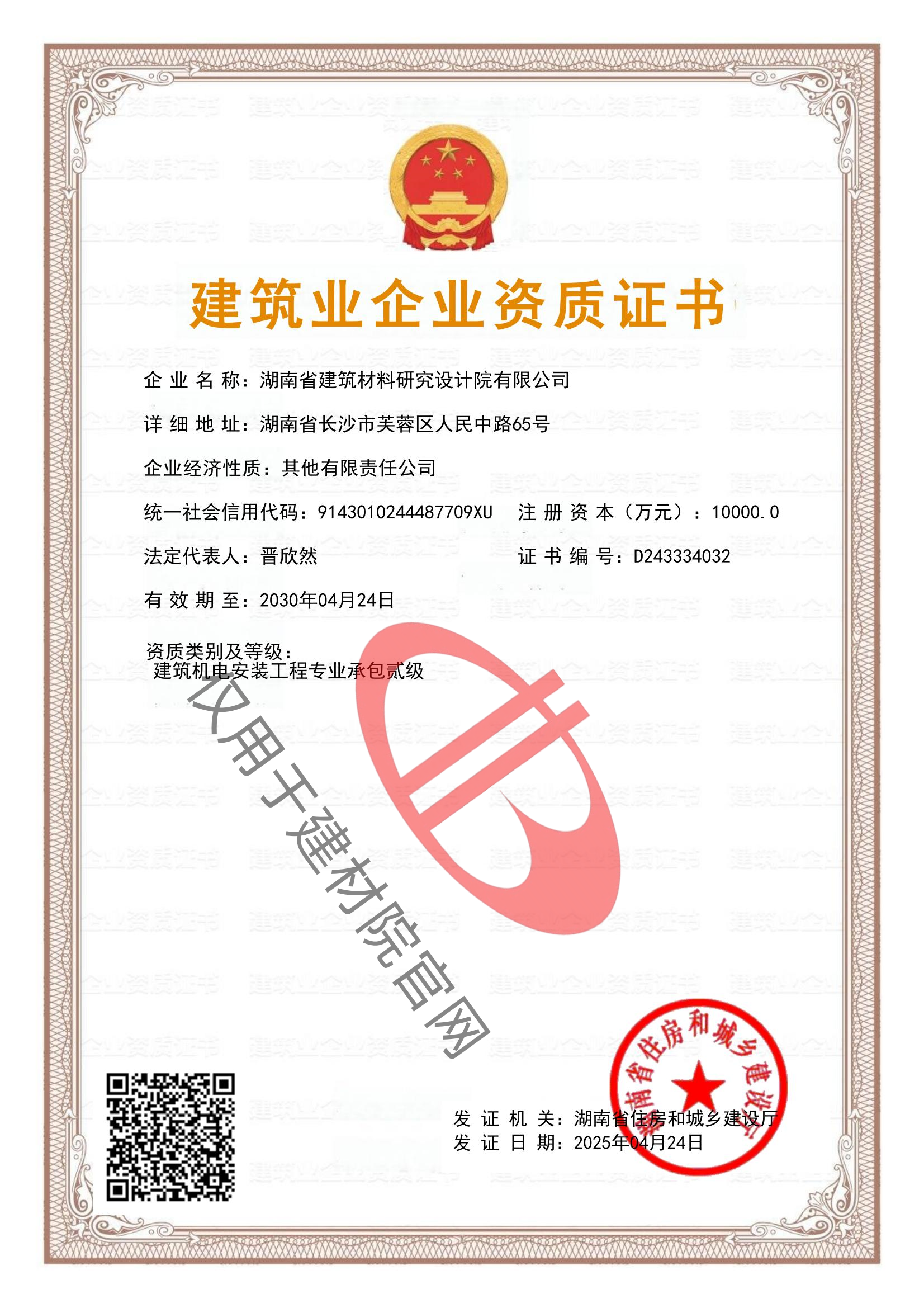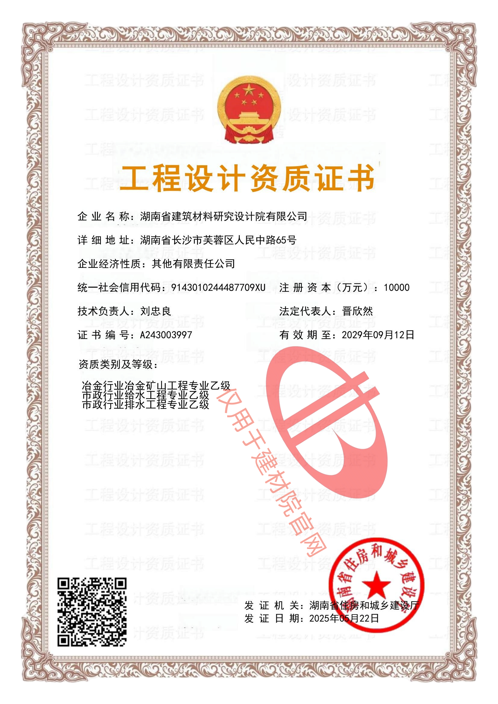 湖南省建筑材料研究設計院有限公司的前身為湖南省建筑材料研究設計院,成立于1958年,是1993年全國首批榮獲國家建材行業(yè)設計、工程總承包甲級資質的四個科研設計單位之一。